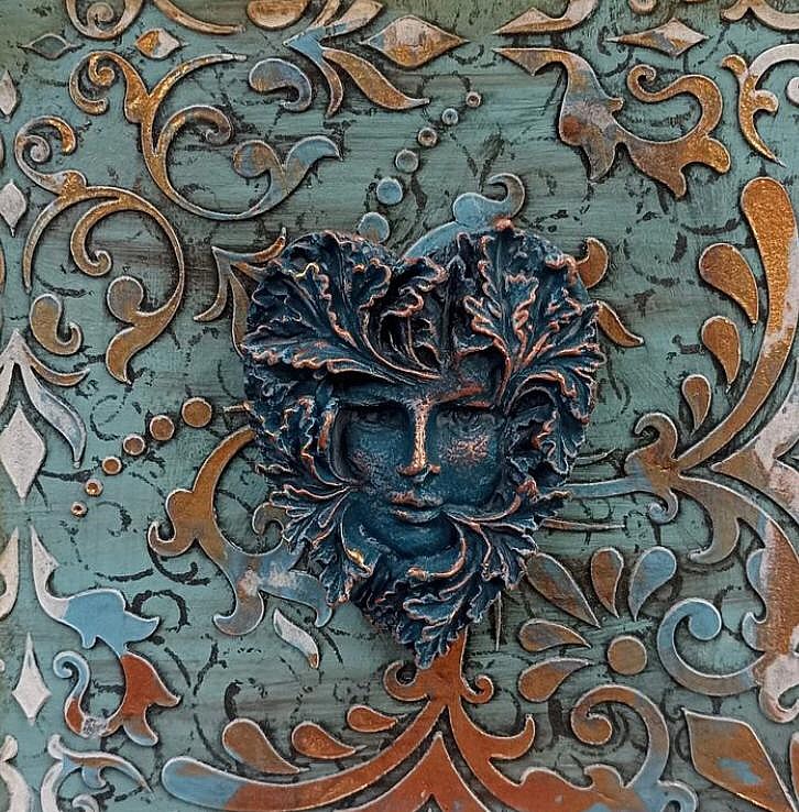 Этот трафарет разработан специально для декора мебели, стен, ткани и керамики.