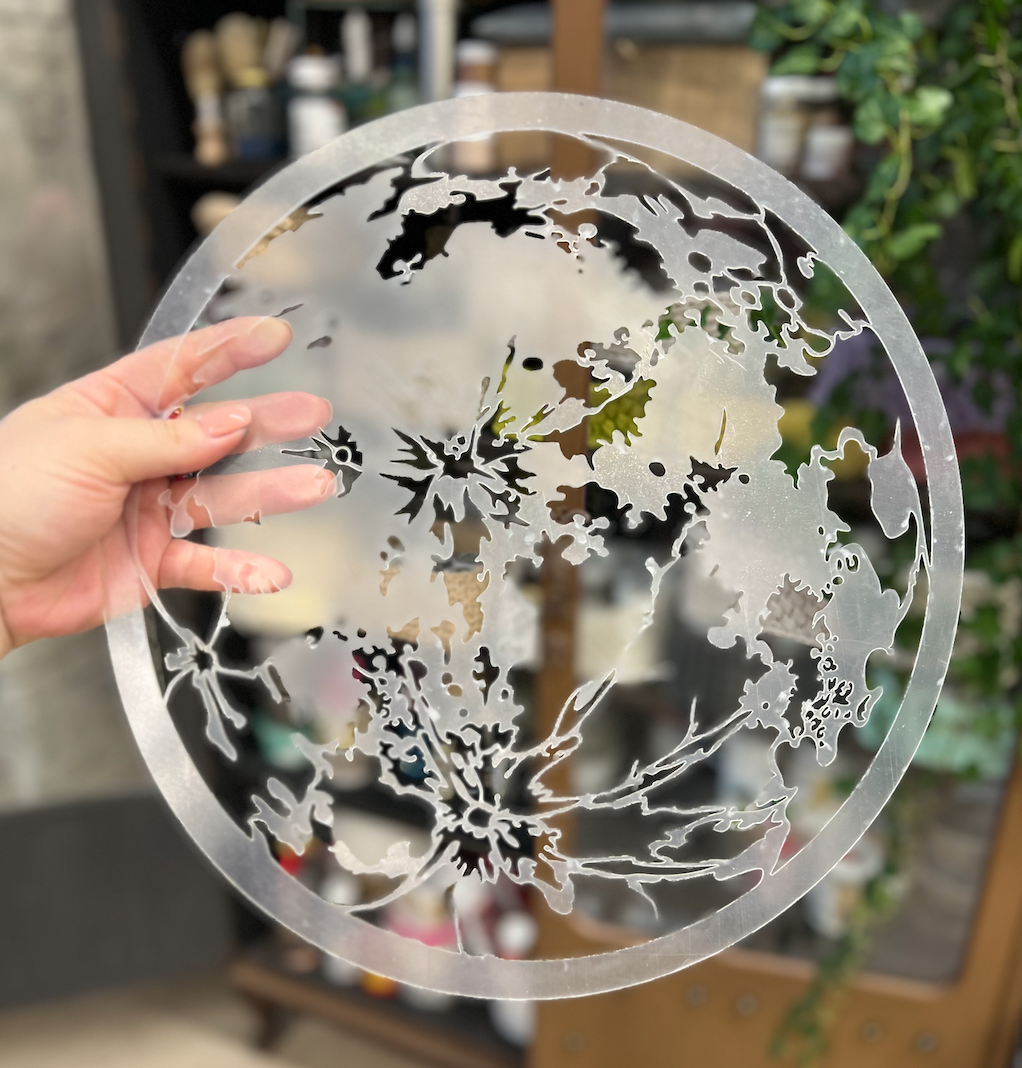 Он создан из гибкого прозрачного пластика толщиной 0,3-1мм, что даст вам возможность пользоваться им много лет. Трафарет можно мыть, чистить зубной щёткой или губкой для мытья посуды. В прорези удобно наносить краску спонжем, круглой кистью, аэрографом, трафарет легко вдавливается в глину, декоративная штукатурка, акриловые фактурные гели лучше всего наносить шпателем и убирать лишнее им же, не повредив трафарет.
